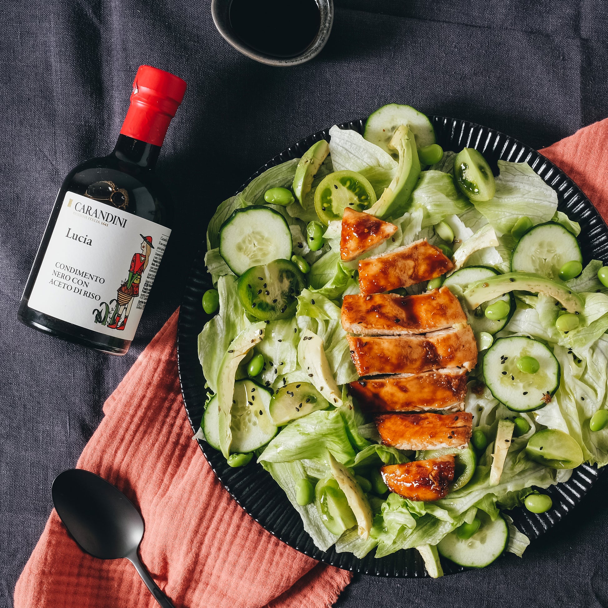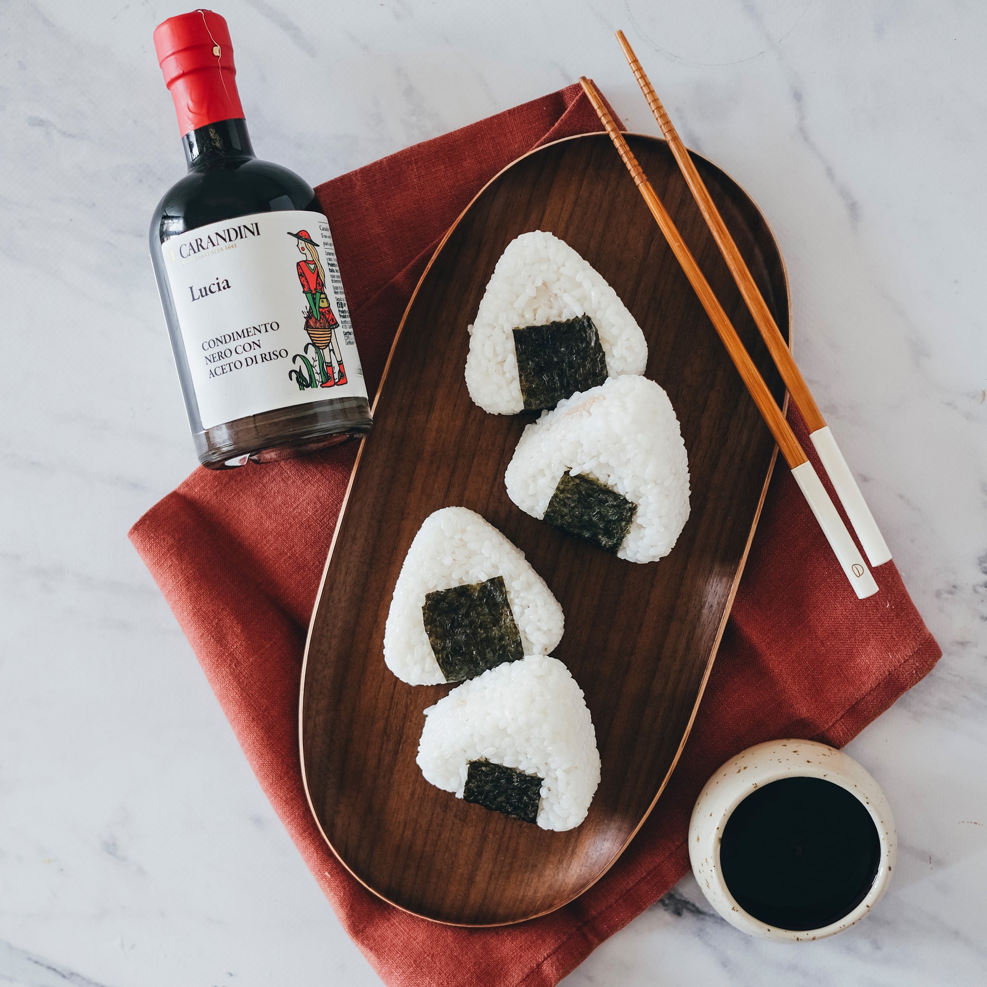 Lucia è un condimento che unisce il nostro saper fare e la passione per la scoperta. Una "salsa di soia all’italiana", che contiene mosto d'uva concentrato e aceto di riso. Gustoso, equilibrato e sorprendente: un prodotto che vuole incontrare da un lato il trend del cibo etnico, e dall'altro che vuole estendere la nostra visione di contaminazione tra la nostra tradizione e sapori lontani.
