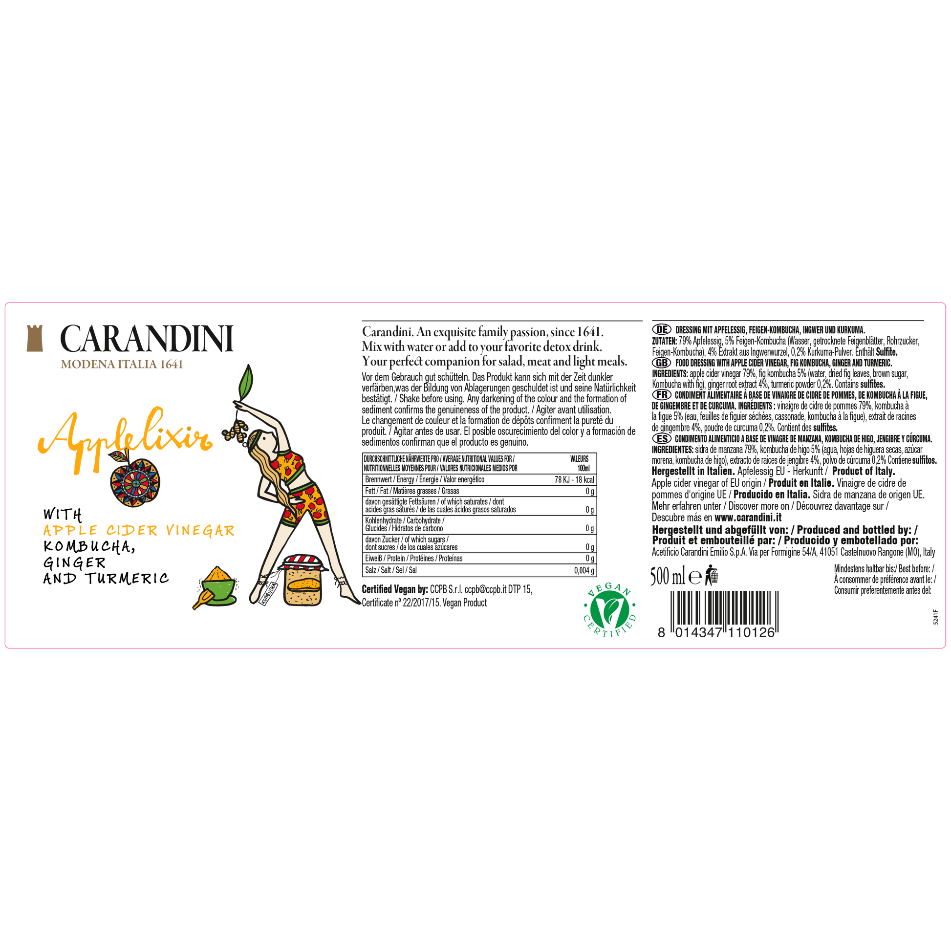 Applelixir con Aceto di Mele, Kombucha, Zenzero e Curcuma è fresco e leggermente piccante.